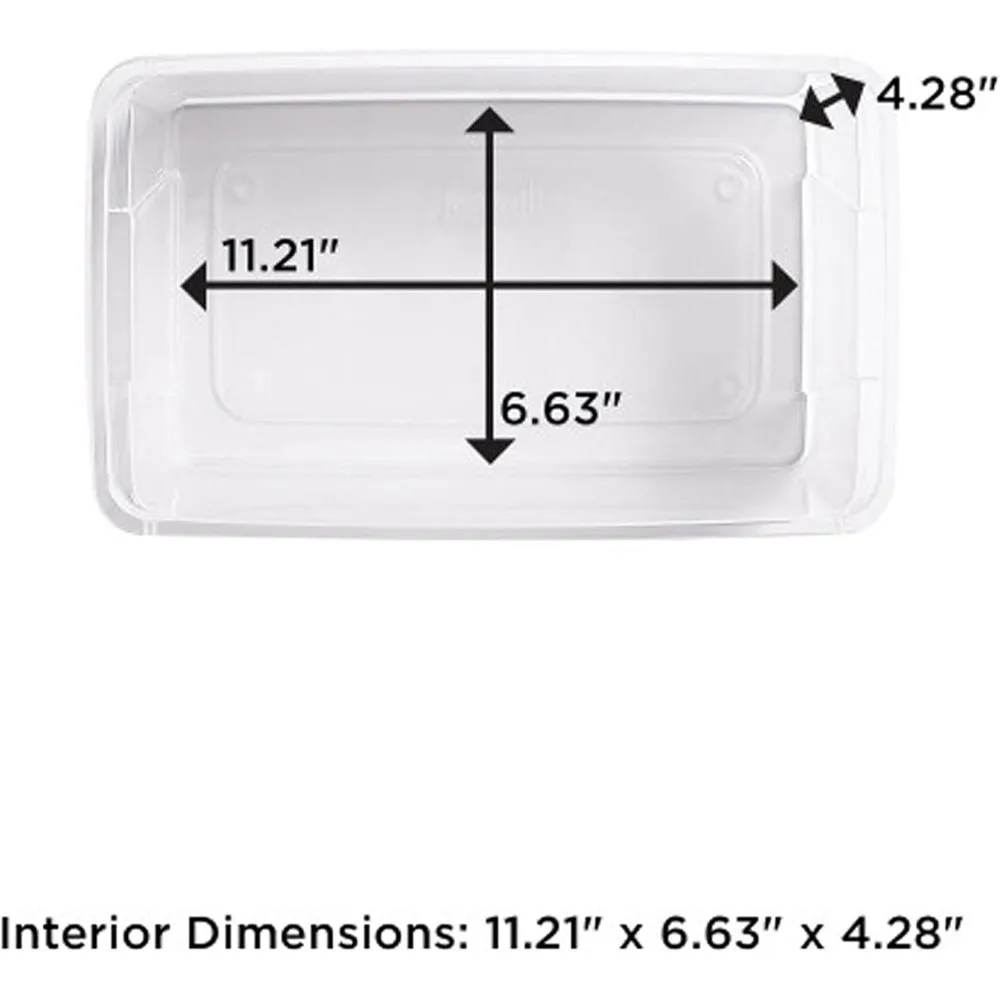 Sturdy, transparent plastic, ensuring easy and swift identification of the contents it holds; Interior dimensions are (L x W x H): 11.21 x 6.63 x 4.28 inches
