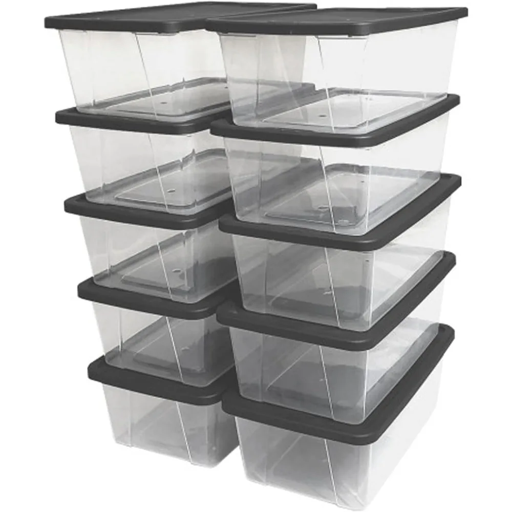 Stackable 6 Quart Clear Organizer Storage Container Bin with Tight Seal Gray Lid for Home Organization, 10 Pack